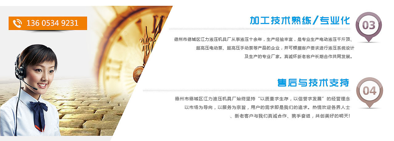 德州市德城區江力液壓機具廠一直專注于電動液壓千斤頂、手動泵、電動泵的生產與研究,是專業生產電動液壓千斤頂、超高壓電動泵、超高壓手動泵等產品的知名企業,并可根據客戶要求進行液壓系統設計及生產的專業廠家。可 為用戶提供貼切的系統解決方案,以頂尖技術和優秀的管理回報廣大客戶。